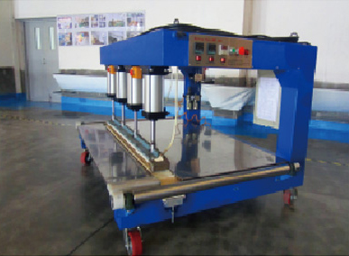 该设备为轨道气动式高频热合机,热合平台长达20米,有专人操作,对热合、冷却的时间可根据膜材的材质不同而调整,电流、电压也可随材质不同的膜材而谐调,以达到最 佳效果。同时,有电火花保护器,防止热合时打火现象。